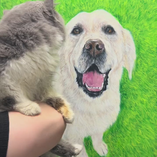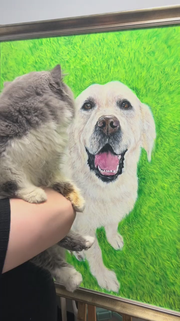 MagicalOkey supply the hyper realism Pet portraits oil painting order service, we have supply the Pet Portraits of Hollywood super star director MikeRuiz\ Italy football player Marco Materazzi \IFBB bikini winner courtney Alexis king\etc and the artist Henry yuan's pet artwork has been showtime on time square in NewYork city 2023 and also have made creative the pet artwork help animals help with MikeRuiz